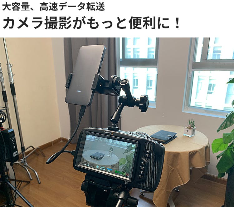 メモリーカードの容量は、SSDに比べ小さいのがネック。RAW映像データなどは容量が大きく、あまり多くを保存することが出来ません。そこで、おすすめしたいのが、メモリーカードの代わりにSSDを取り付けた、この「Signature Pro」をお使いいただく方法。高速データ転送で、ストレスも無し。快適に撮影が進みます。