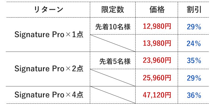 ◯ リターン価格:各リターン記載の通り