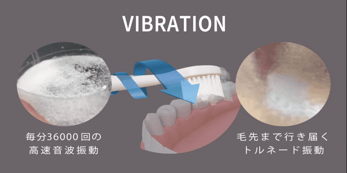 通常のブラッシングでは落とせない汚れを、毎分36000回の超音波ブラッシングでごっそり落とします。