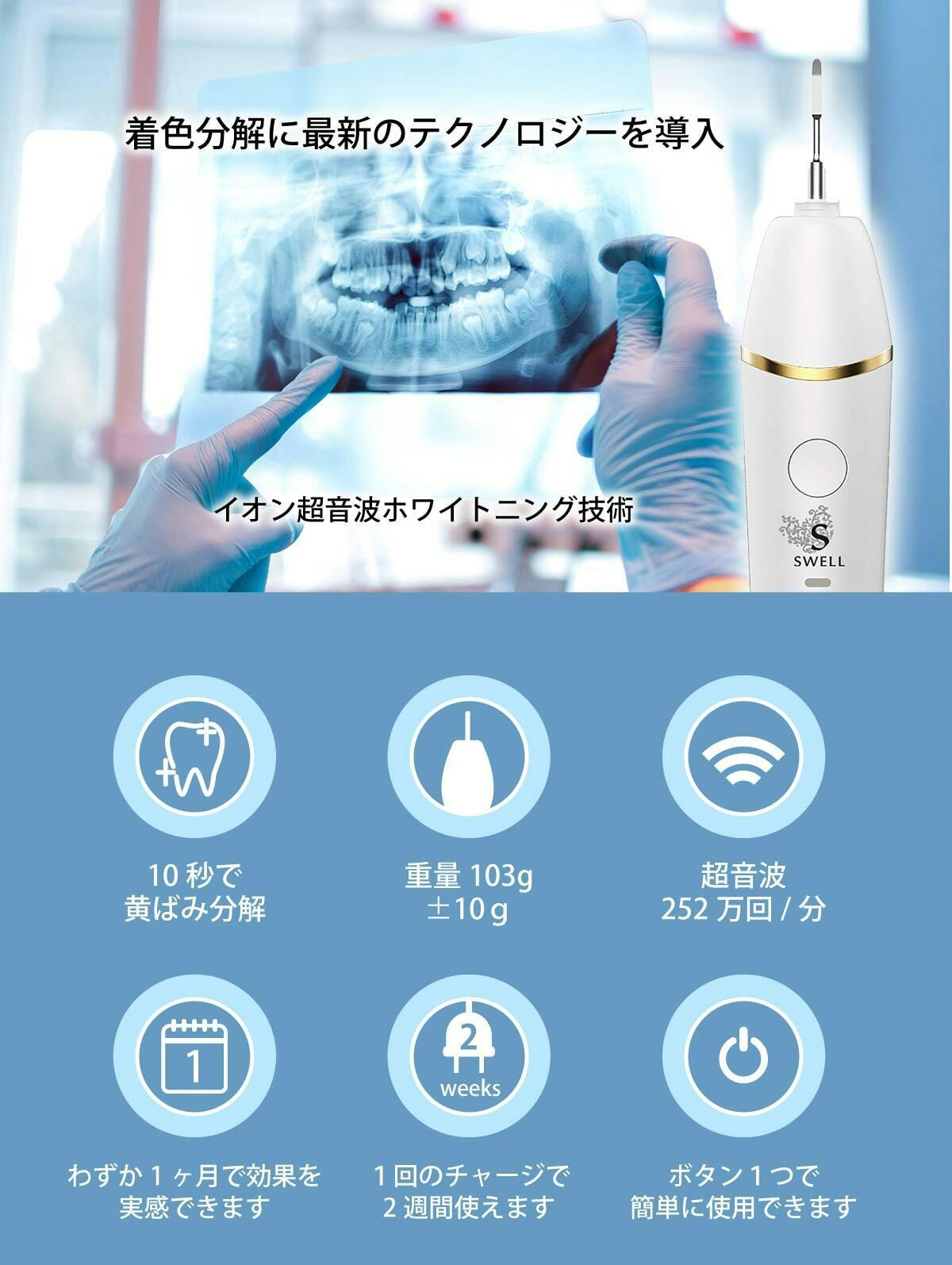 1分間で252万回ものイオン超音波(ultrasonic )振動でりんごの皮を剥くように歯をホワイトニングを可能にしましたが、日本国内ではそれほど普及していません。そのため、私たちは、日本中の人びとにこの新技術を広めたいと考えています。