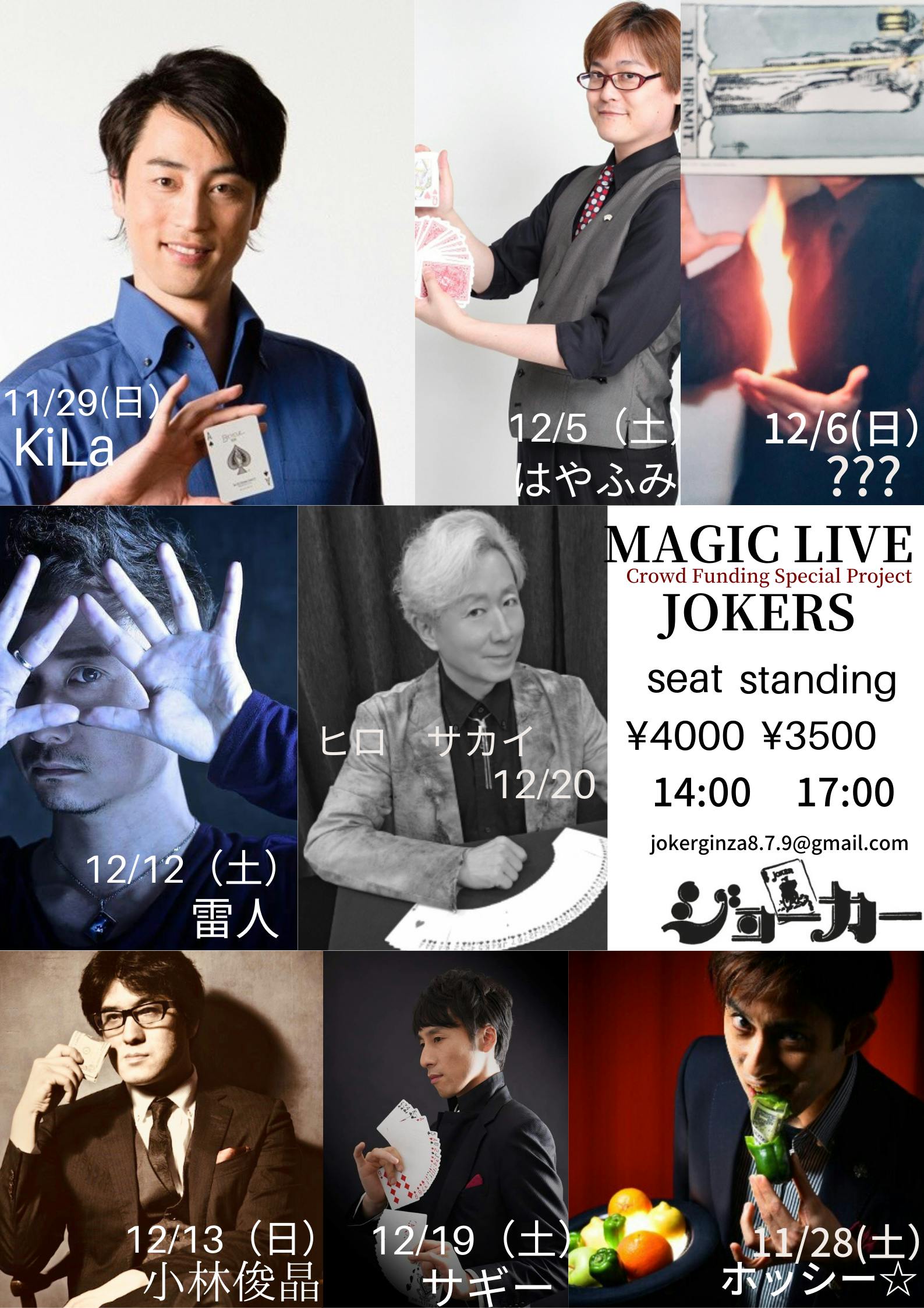 2020/11/09 18:11この度スタートしたクラウドファンディングをさらに盛り上げるべくジョーカーに縁あるマジシャンが集まってくださる事になりました。題してMAGIC LIVE JOKERS詳細はポスターにて! もっと見る