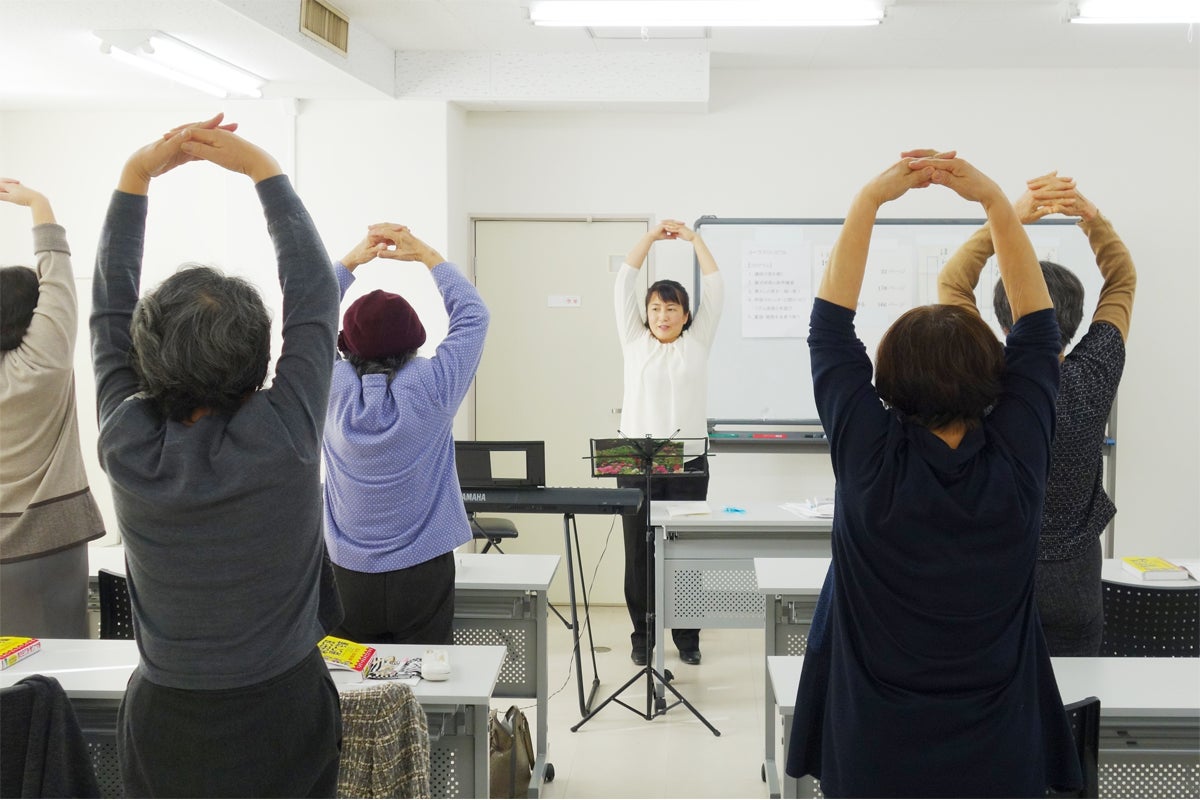 元々は『コーラスリハビリ®』として高齢者施設などに入居されてる方を対象に8年前から実施していました。それを一般の方に応用できないかとカルチャースクールで3年ほど前から『のどトレ』として始めました。受講者の年代にあわせ、歌に合わせて口腔トレーニングをおこなっています。