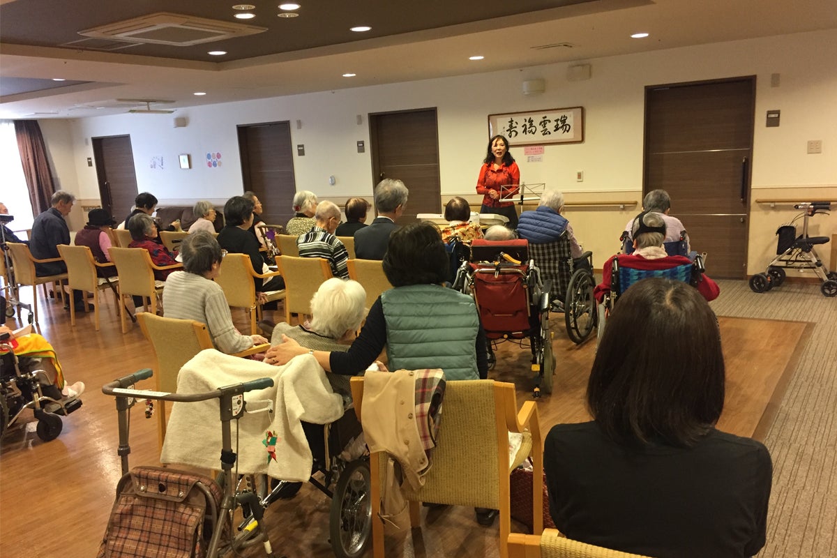 介護事業をされている大手企業施設様の定期開催、各地のカルチャースクールで指導するほか、行政主催の介護予防事業や地域病院でのクリスマスイベント、ロータリークラブの奉仕活動など開催してまいりました。参加いただいた皆様からは毎回「楽しかった!」と好評をいただいています。