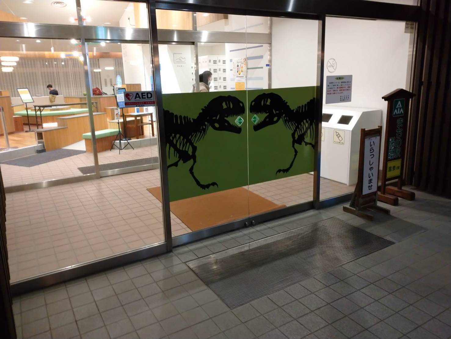 そして、ガサゴソして日が暮れたので、家から10分程の所にあるお風呂屋さんに行ってきました!水芭蕉ってお風呂屋さんなんですが、恐竜博物館が近いこともあって、恐竜が至る所にいるんです!!