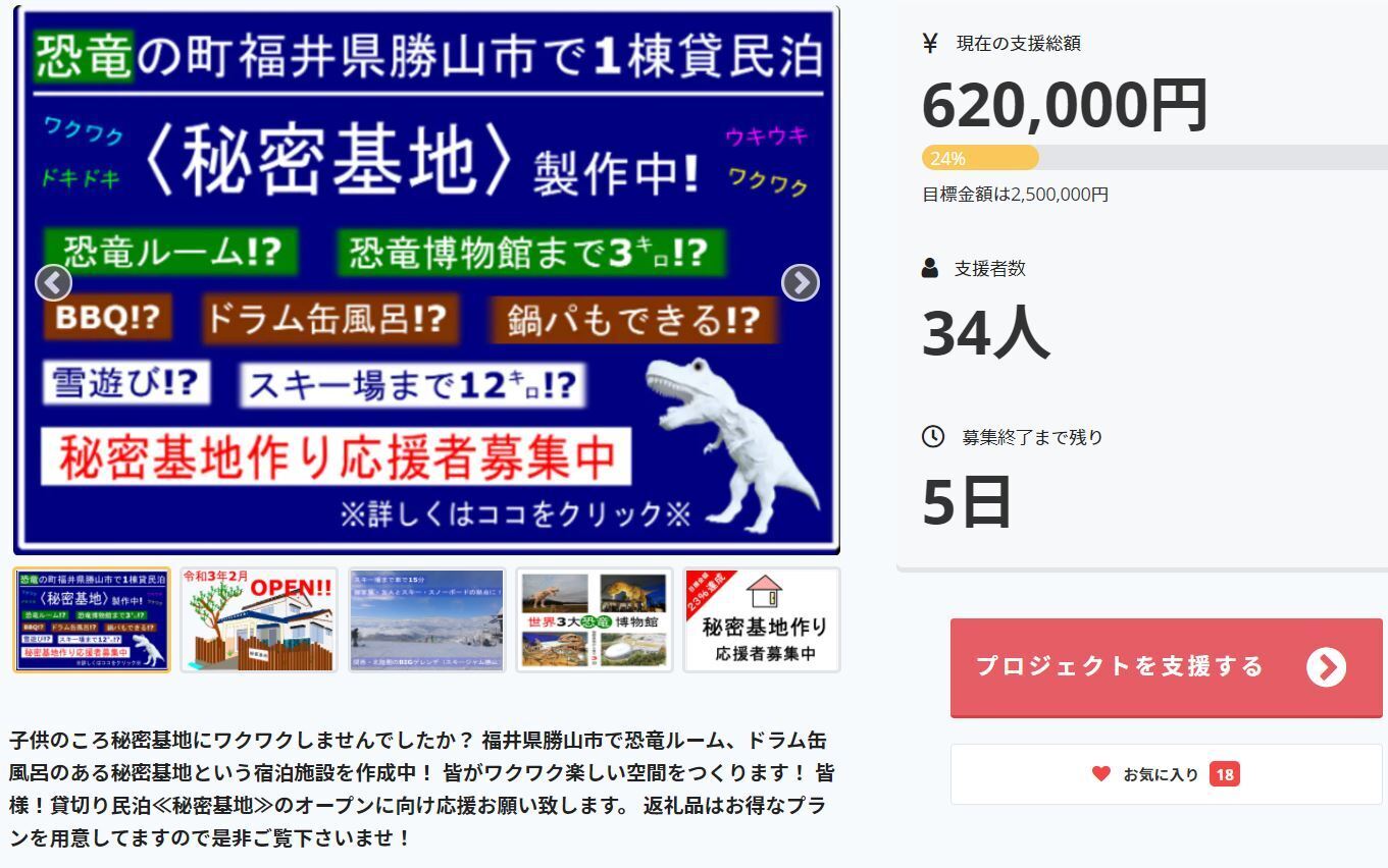 クラウドファンディングは現在目標額の24%620000円となっております。