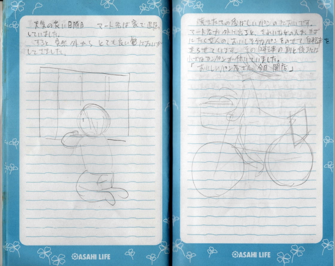 この草稿の存在は、家族の中で誰も知っていたものはおらず、正確にいつ頃書かれたものかはわかりませんが、主人公の名前のマートくんは、二人の息子、長男マサヨシと次男トモヤスの一文字ずつをとってつけられたと思われ、息子たちがまだ幼かった数年の間に書かれたものと思います。