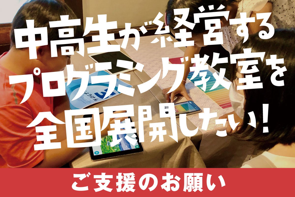 今回のクラファンはその中でも最も特徴的な取り組みである『中高生が経営する小学生向けプログラミング教室』の活動を各地に広げたい!!という思いで実施しています。