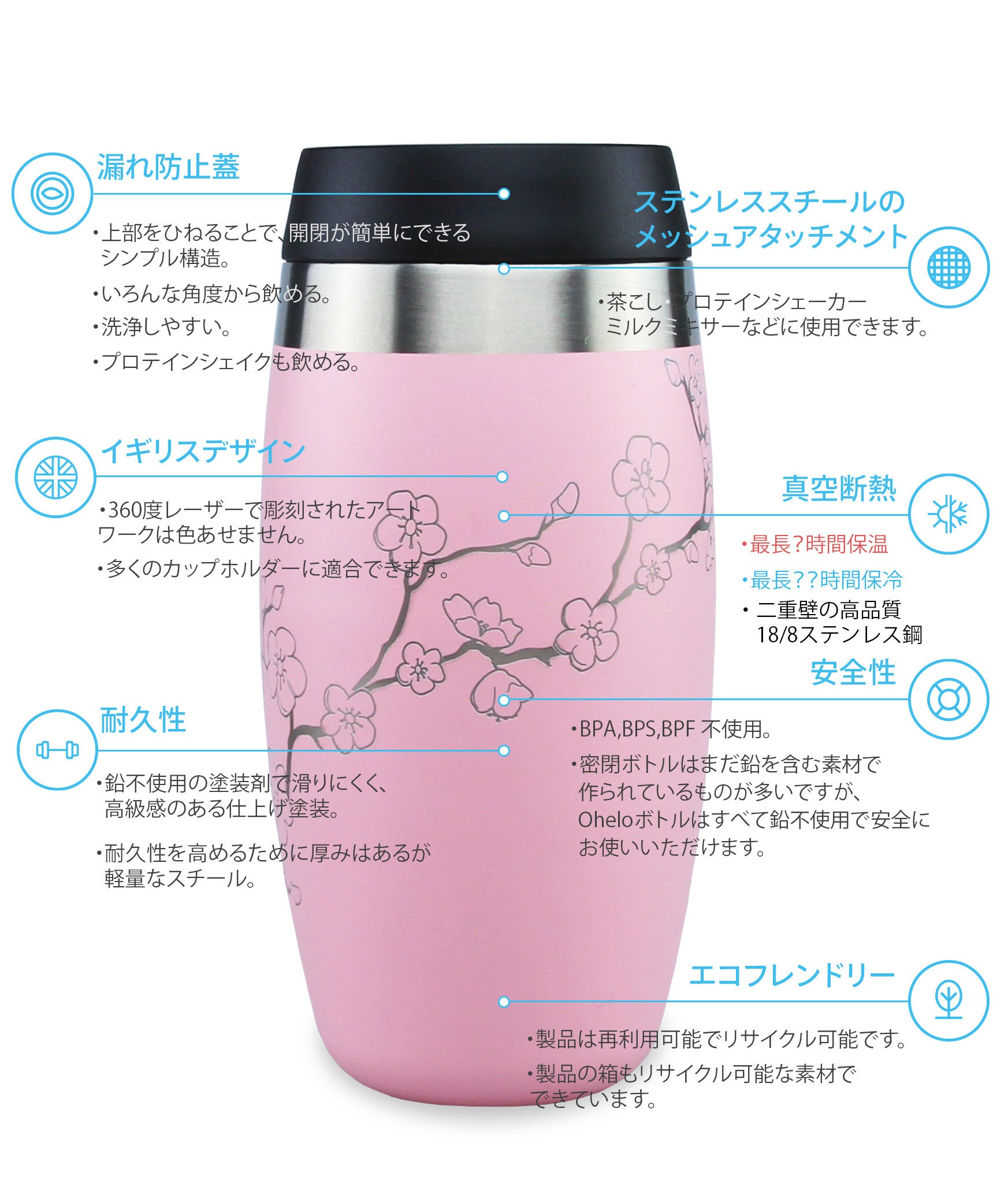 Oheloオヘロは、英国デザインの高性能ステンレスボトルとタンブラーです。