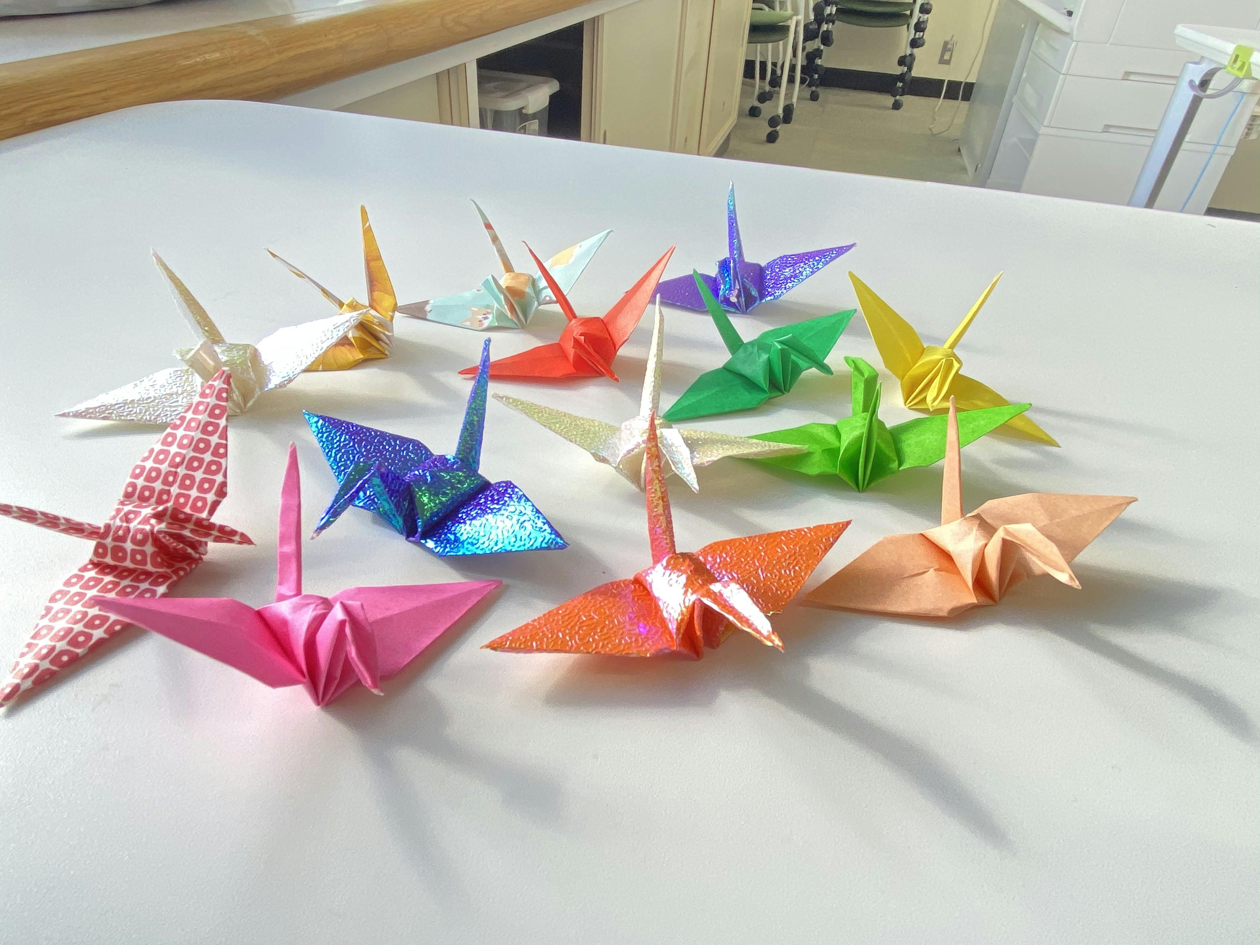 今回のツリープロジェクトの際に使ってもらいたいという事で、地域の方からたくさんの折り鶴をいただきました。