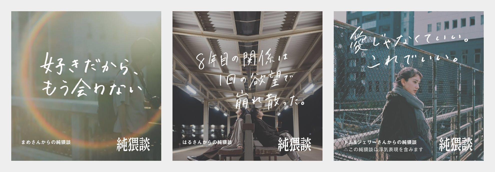 純猥談は、「誰もが登場人物になったかもしれない、誰かの性愛にまつわる体験談」を投稿するサービスとして、2019年11月からスタートしました。