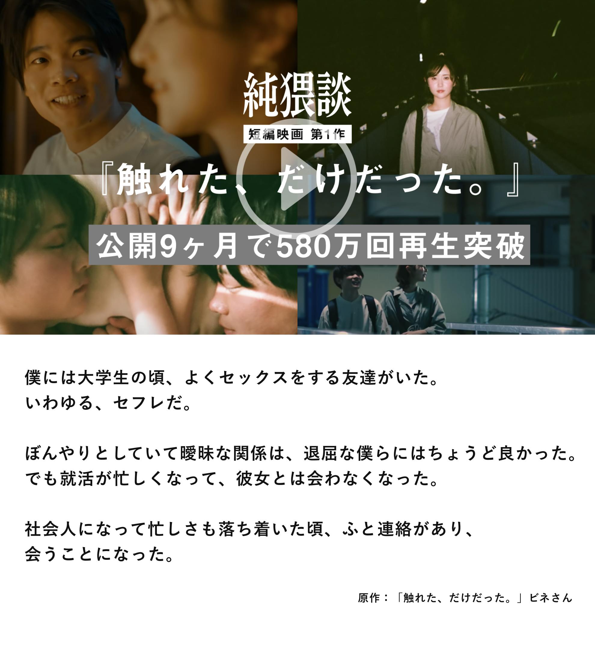その純猥談が、映像化することで結果的に沢山の方に届き、「これは自分のことが描かれてる」といった感想を多く頂く形となりました。