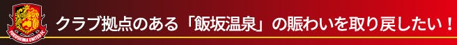 福島市のとうほうみんなのスタジアムでのホームゲームの時は他県からサポーターの方がおいでになり、宿泊や日帰りで飯坂温泉を楽しんでお帰りになります。アウェイの試合の時はユナイテッド関係者が飯坂をはじめとした福島県内で収穫した野菜や果物を販売しながら地域の宣伝をしてくれています。このような地域に根付いたクラブを飯坂温泉は応援しています。皆様のご支援よろしくお願いいたします。