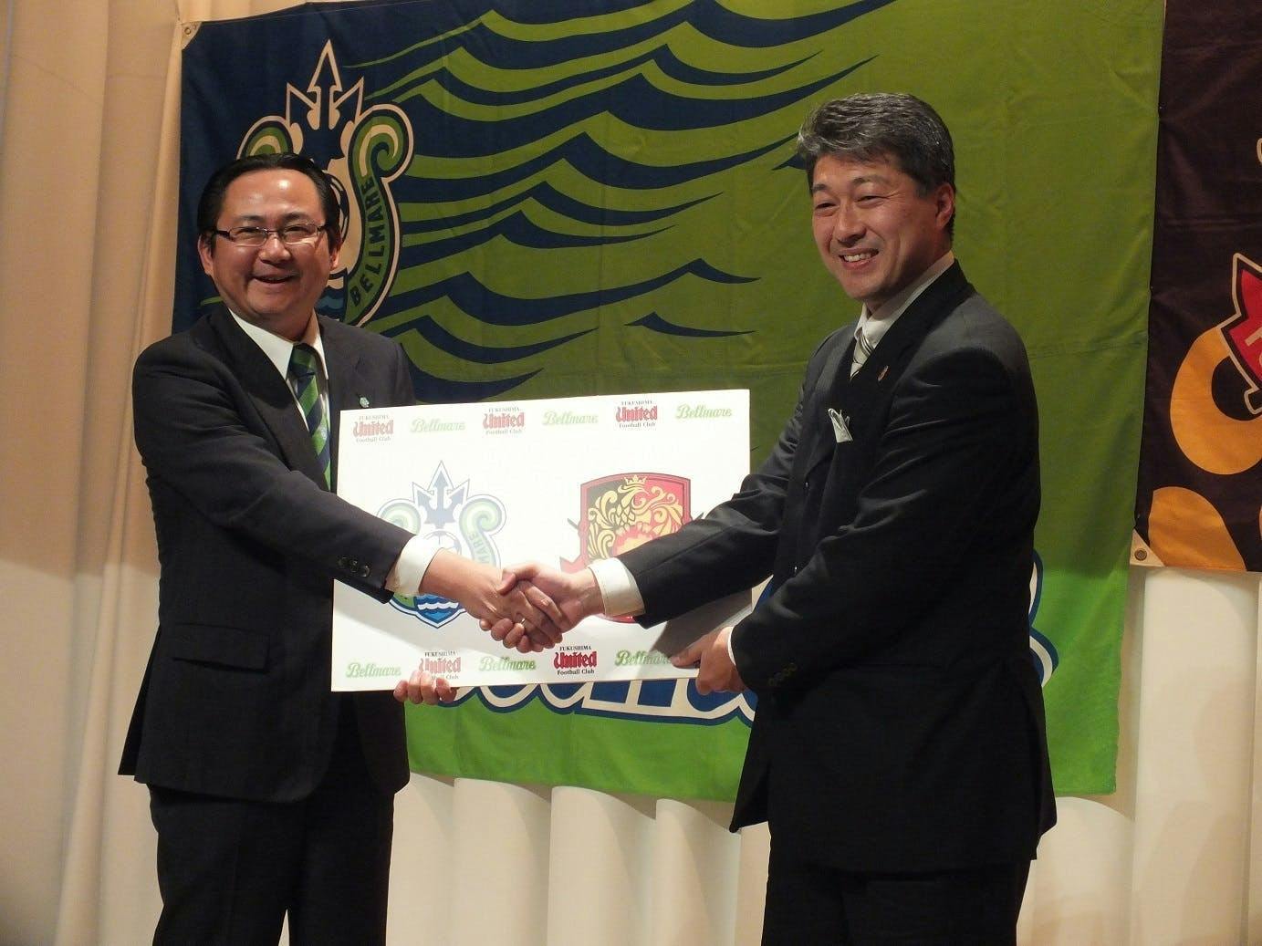 2013年、震災から2年で悲願のJFL(日本フットボールリーグ)昇格。天皇杯ではJ2やJ1クラブに次々と勝利し、アマチュアでは異例の全国16強を成し遂げました。さらには、クラブやホームタウンの枠を飛び越えて、互いのスケールメリットを拡大すると共に、さらなるクラブの価値向上と発展を目指すことを目的に湘南ベルマーレと業務提携を行いました。