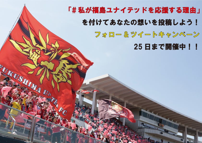 • こんばんは、福島ユナイテッドです!クラウドファンディング終了まで、残り14日となりました。本日時点で、総支援額は700万円(達成率70%)を突破いたしました!本当にありがとうございます。目標金額達成はもちろんのこと、広く福島ユナイテッドFCの活動を知っていただき #今こそ繋がりタオす ため、このたび「フォロー&ツイートキャンペーン」を実施することとなりました!!キャンペーン概要実施日時 2020年12月11日~12月25日①福島ユナイテッドFC公式SNS(TwitterまたはInstagram)をフォロー②指定のハッシュタグをつけてSNS(TwitterまたはInstagram)で福島ユナイテッドを応援する理由、今回のクラウドファンディングを支援したいと思った理由などを投稿③フォロー&ツイートをしてくださった方の中から抽選で、公式グッズをプレゼント! Twitter:https://twitter.com/fufc_staff Instagram:https://www.instagram.com/fukushimaunited_fc/指定ハッシュタグは「#私が福島ユナイテッドを応援する理由」投稿いただいたメッセージは、2021シーズンホーム開幕戦の試合会場に掲出します!このクラウドファンディングを通して、クラブ、パートナー、地域、サッカー仲間、皆様が繋がれるようにと願いを込めて...。たくさんの投稿、熱いメッセージを心よりお待ちしています♬※鍵アカウントの方は確認がとれませんので、投稿いただいてもグッズ抽選には参加できません。※お一人何回投稿いただいてもOKです!※当選のご連絡は、SNS内のDM(ダイレクトメッセージ)にて行います。 もっと見る