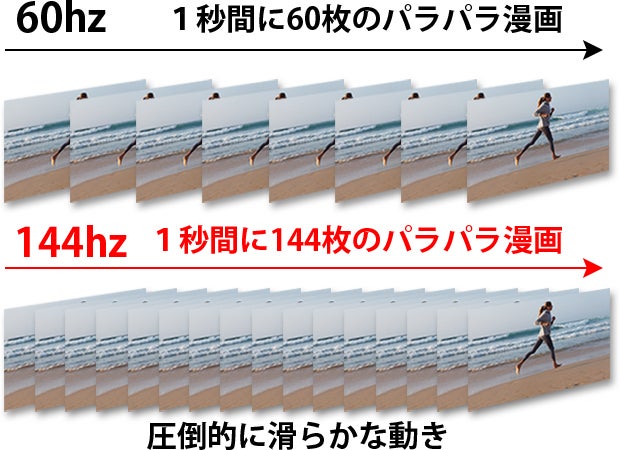 滑らかに動く144Hzのハイリフレッシュレート