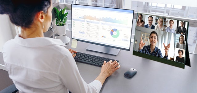 自宅ではサブディスプレイ、会社では商談やミーティングでの資料提示に。