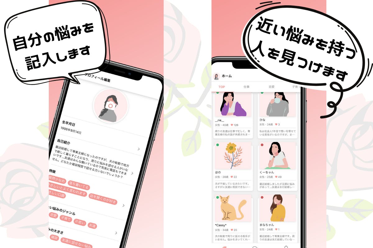上記の出来事・気づきがきっかけでアプリとして安価で手軽に悩みの共感を得られるようなサービスがあるべきだろうと考えました。