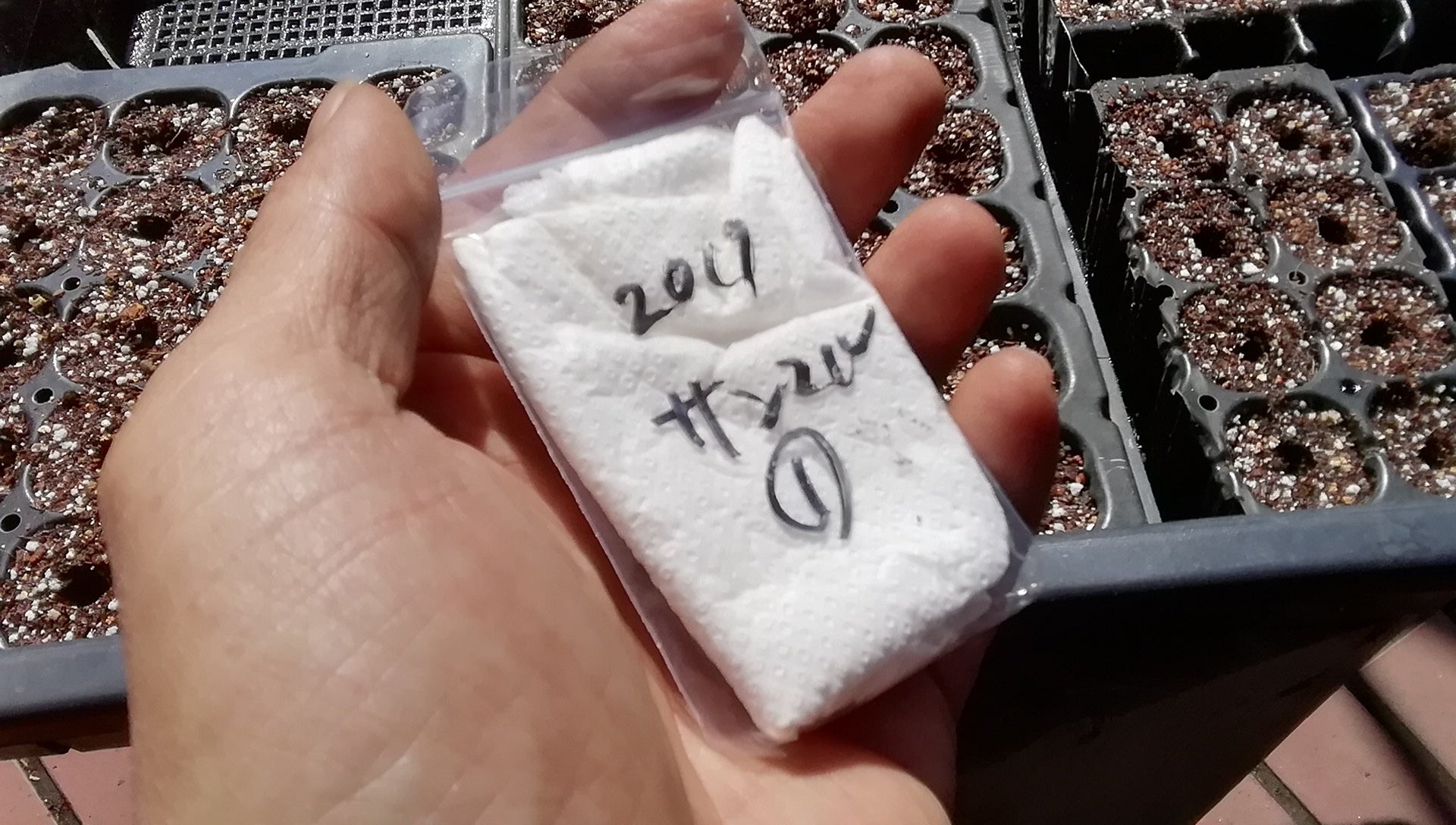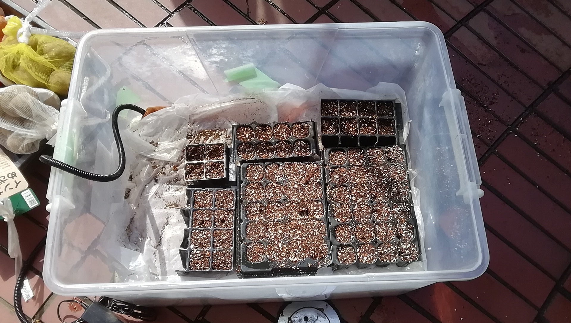 トマトやナスはペット用のホットカーペットを敷いた簡易温室で、これから2ヶ月間面倒を見ます。まるで生まれたての赤ちゃんを世話するような感覚。一粒の種が大きくなるように願いを込めて、土に下ろしていきます。