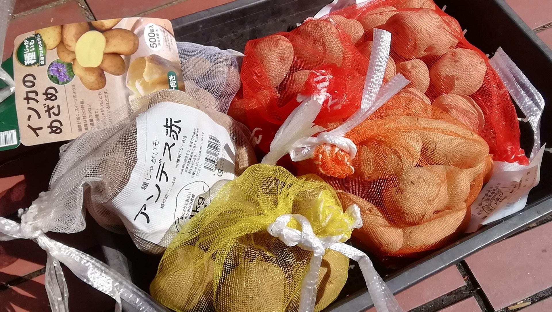 ジャガイモはこうやって日光浴させてしっかりとした芽がつくようにしてやります。