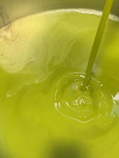 オリーブオイルに旬があることをご存知でしたか?秋に搾ってそれを次の秋まで売るので今が旬なんです。ワインと違って熟成はできませんから、香りが一番高いのがこの時期なんです。この搾りたての芳しいグリーンの香りは来月、再来月では味わえません。味わいたいとなれば一年後です。