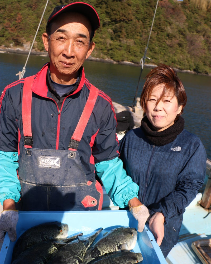 山口県 下松市 笠戸島で生まれ育った夫の元に嫁いで、30年が経ちました。夫は、笠戸島でとらふぐ養殖と定置網漁を中心とした漁業を営んでいます。