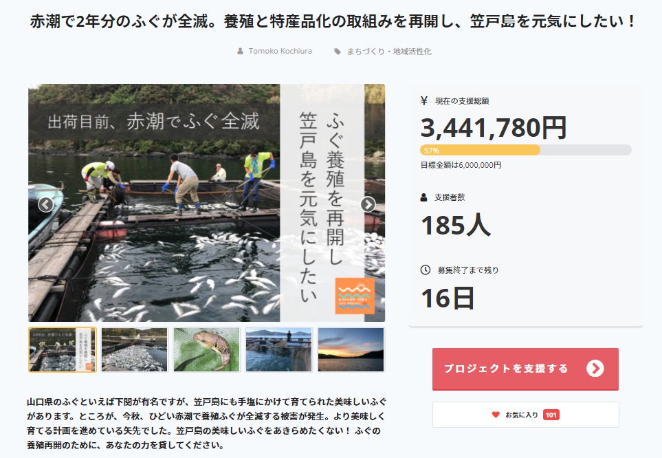 現在の支援総額 ¥3,441,780 (57%)