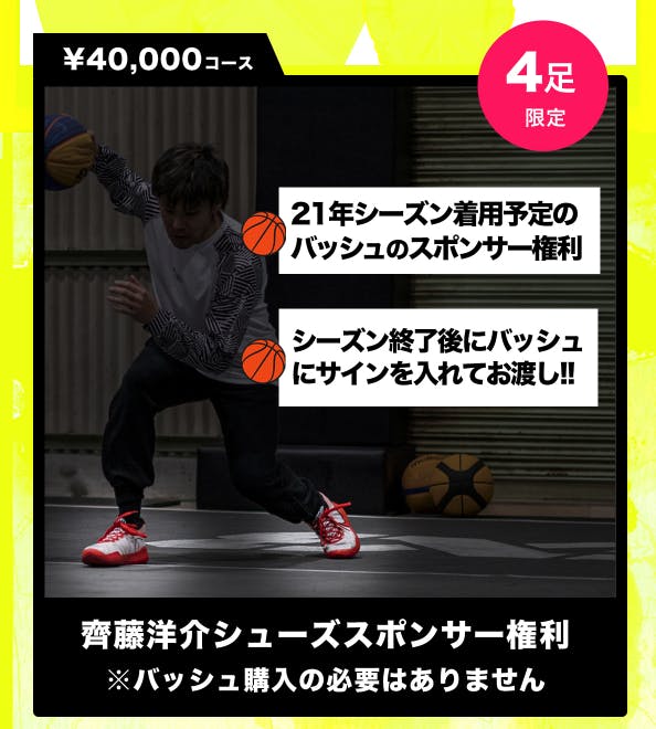 21年の3x3シーズンで使用予定のバッシュにサインを入れて使用終了後にプレゼントいたします!私、齊藤洋介にシューズをスポンサーしているんだよ!と自慢しちゃってください!
