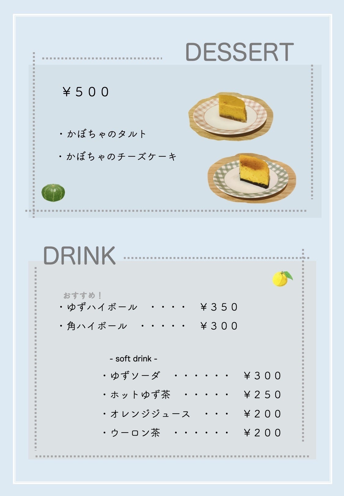 メニューはこちら。