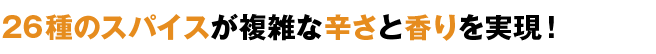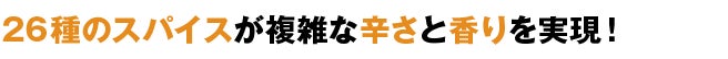 コリアンダー、ウコン、クミン、メッチ、フェンネル、アニス、シナモン、カルダモン、クローブ、タイム、赤唐辛子、白コショウ、ナツメグ、オールスパイス、オレガノ、甘草、キャラウェイ、黒コショウ、セージ、バジル、マジョラム、ローズマリー、陳皮、メース、セロリー、ローレル、赤唐辛子。26種類ものスパイスをプロの技でレトルトカレーの世界を変えた。