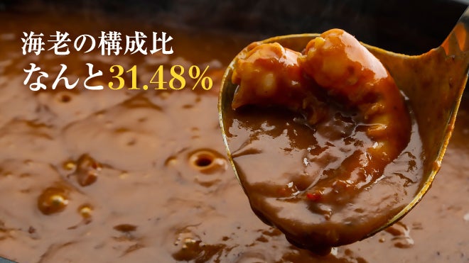 上質の海老の出汁をとる為には大量の海老が必要になりますが、究極の海老カレーには、一袋当たり大海老が4匹、小海老が25~30匹も使用されています。これこそが究極の海老カレーのこだわりです。