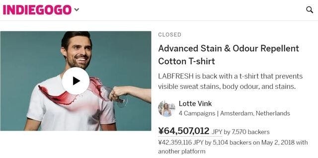 米国クラウドファンディング「Indiegogo」において、LabfreshがTシャツカテゴリーでは歴代1位の65,185,742円の調達に成功しました。