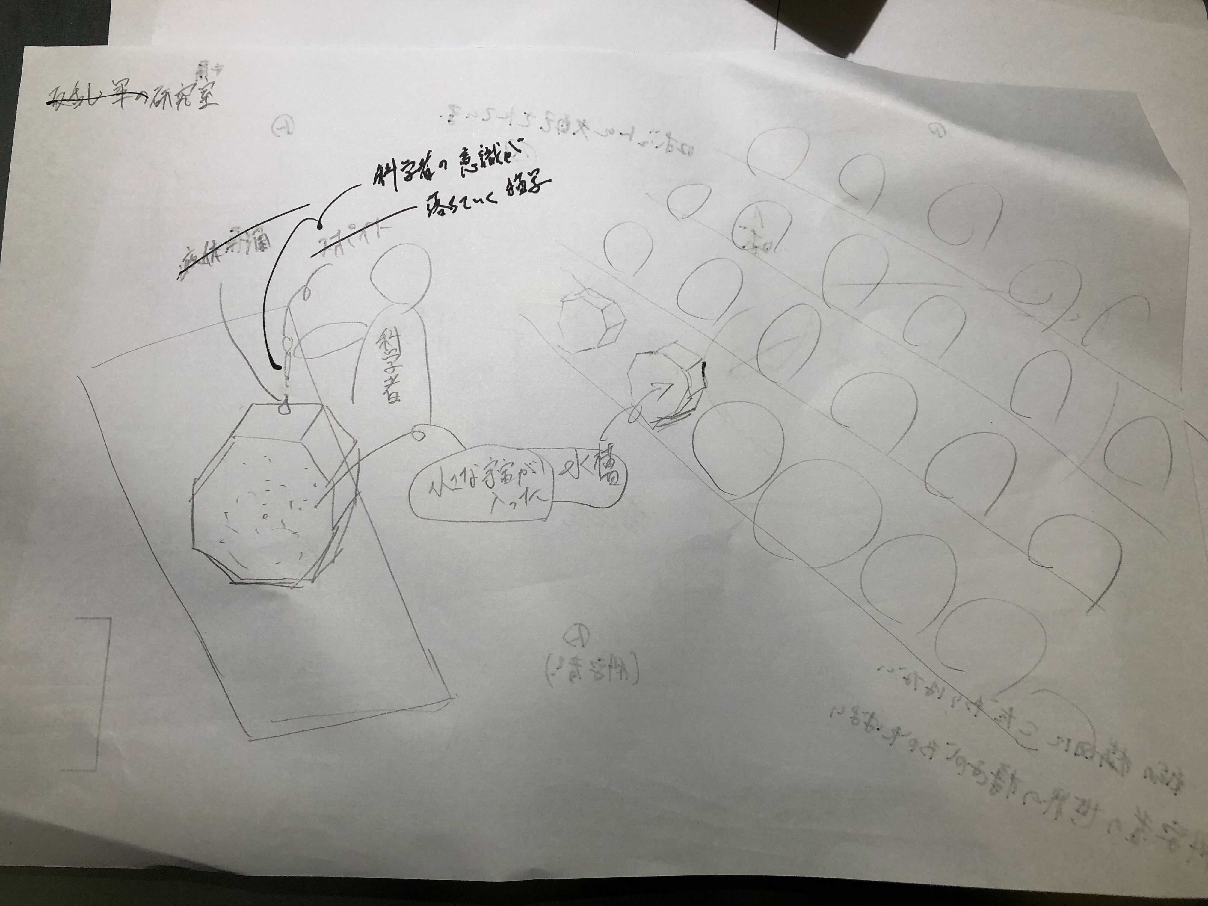 このイラストでは科学者の正体について一切明かさないこととしているため,科学者の性別や表情などがわからないように防護服で全身を隠すことにしました.