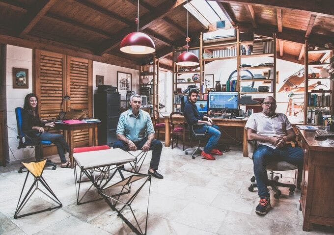 私がポータブルな家具の改良方法について面白半分で考え始めたのはその頃のことです。長年デザイナーをつとめ、幾何学の愛好家である私の父Paoloを加え、真剣に向き合い始めました。その後3年間で革新的技術を開発し、チームに新メンバーが加わり、私たちはついに初の素晴らしい発明を製品化する準備ができています。
