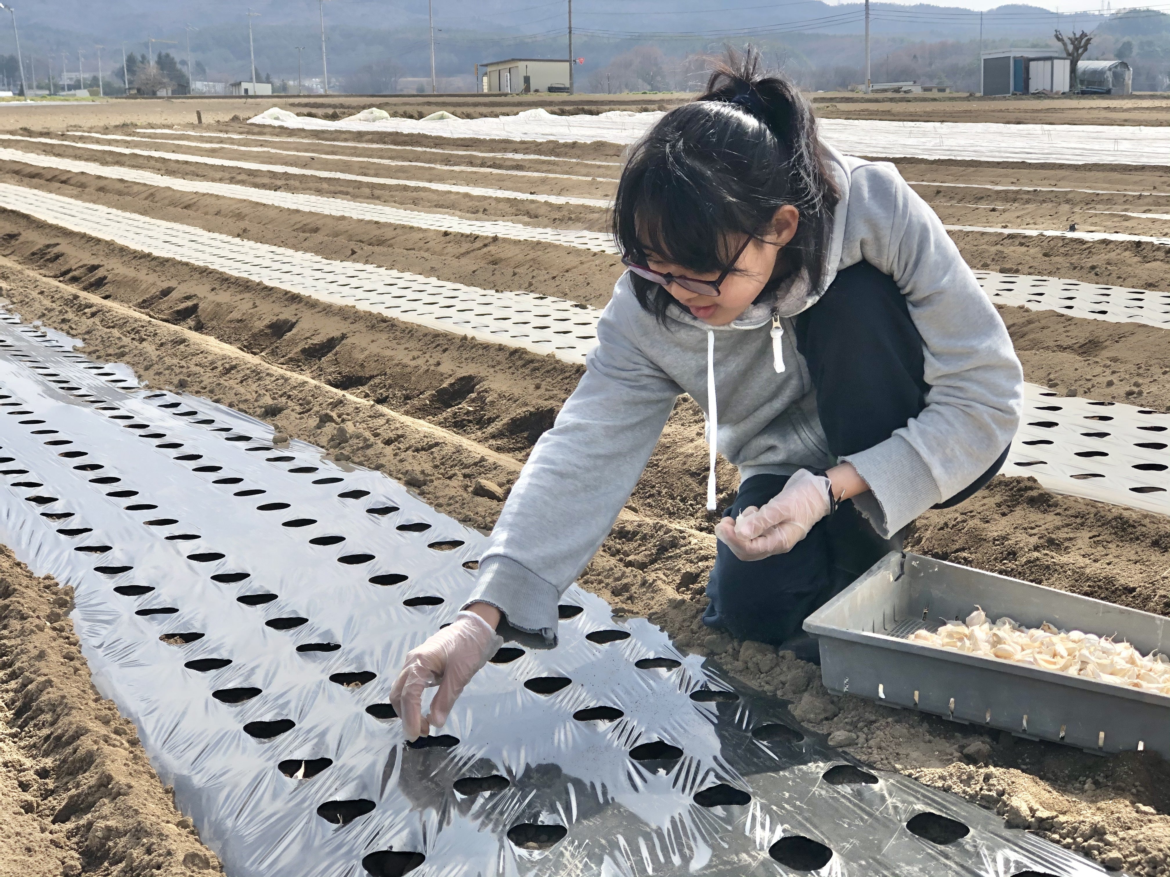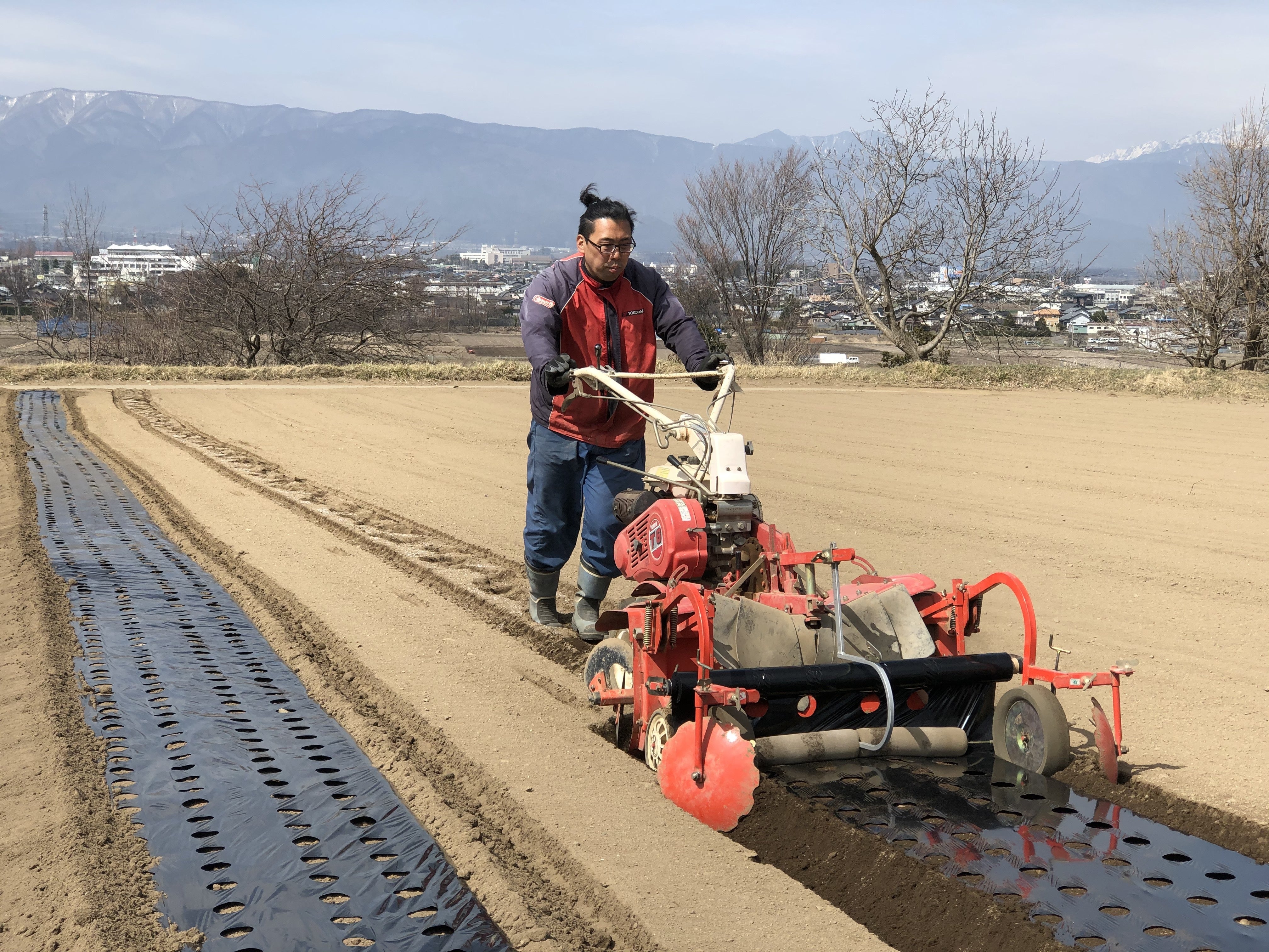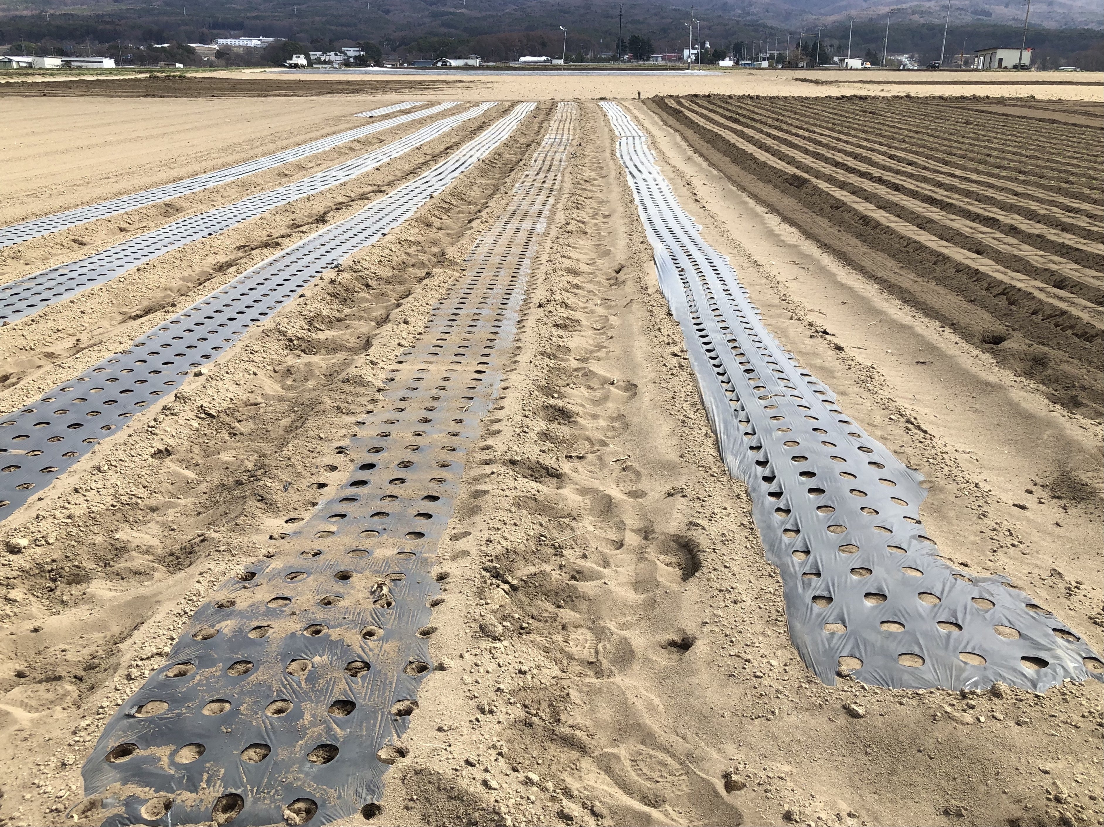 天気の良い日にはひたすら畑を耕し、「マルチ」と呼ばれる作物の株元を覆うフィルムを張っていく作業を続けます。