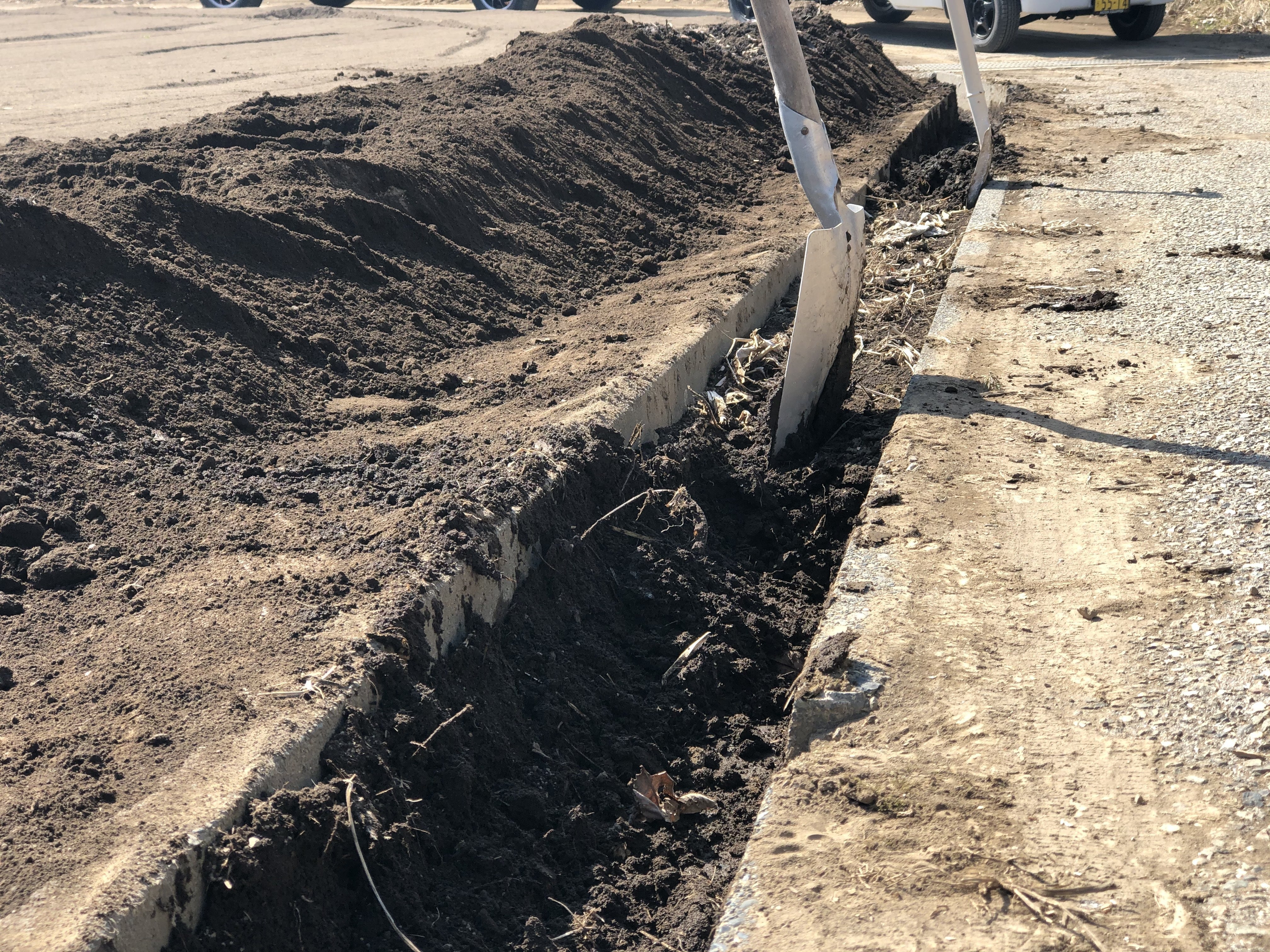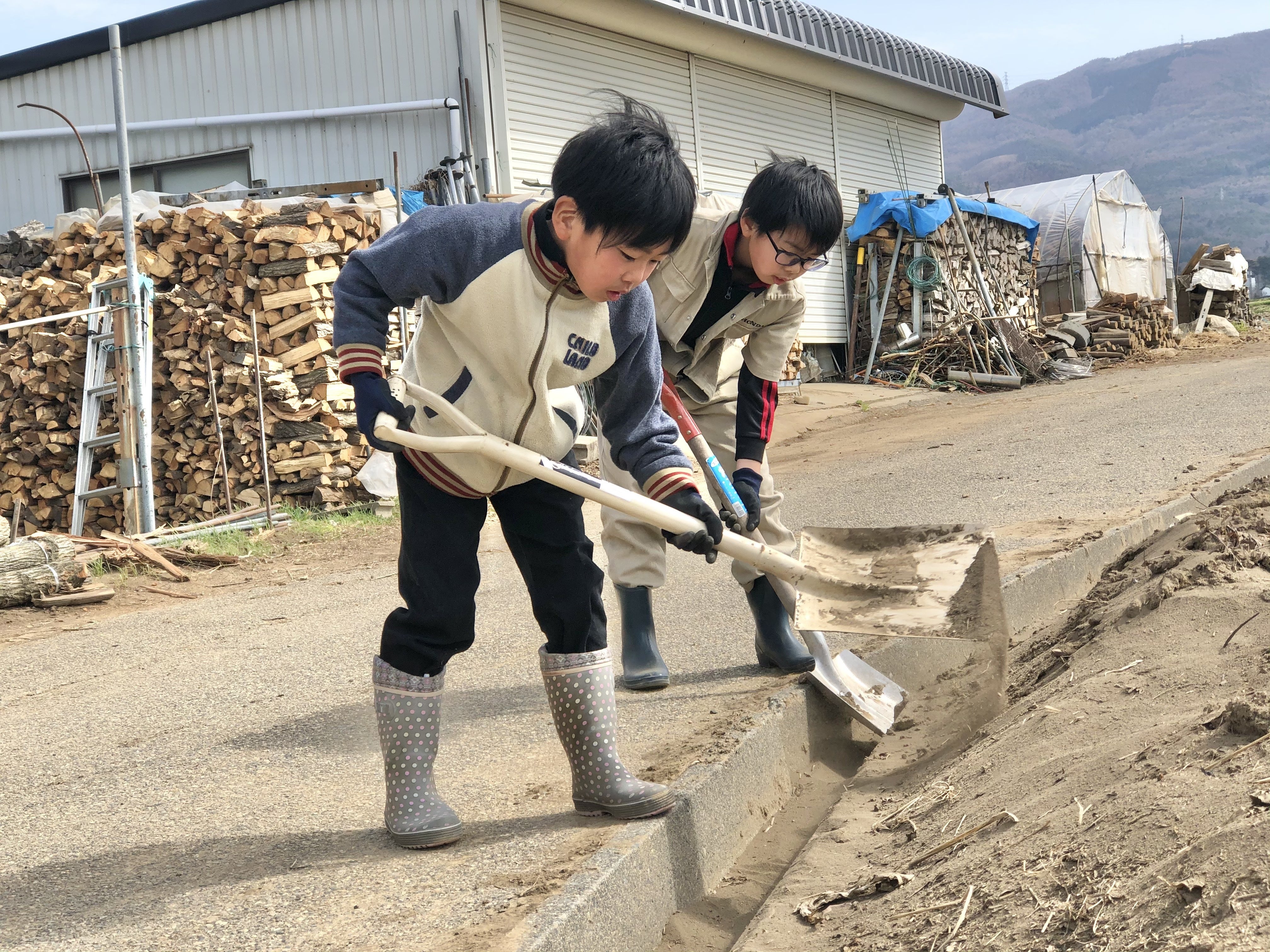息子二人には側溝に溜まった土を掻き出す作業をしてもらいました