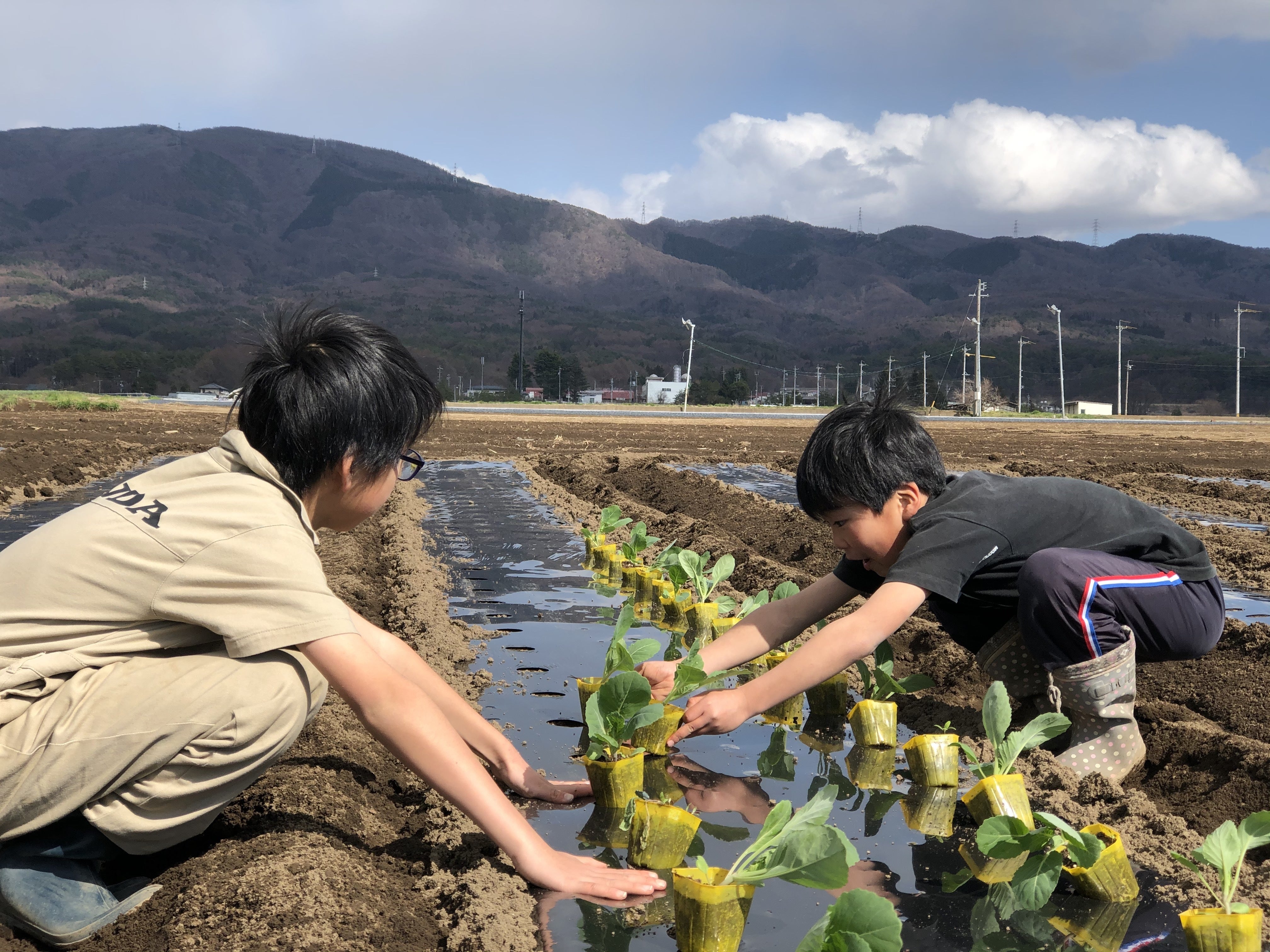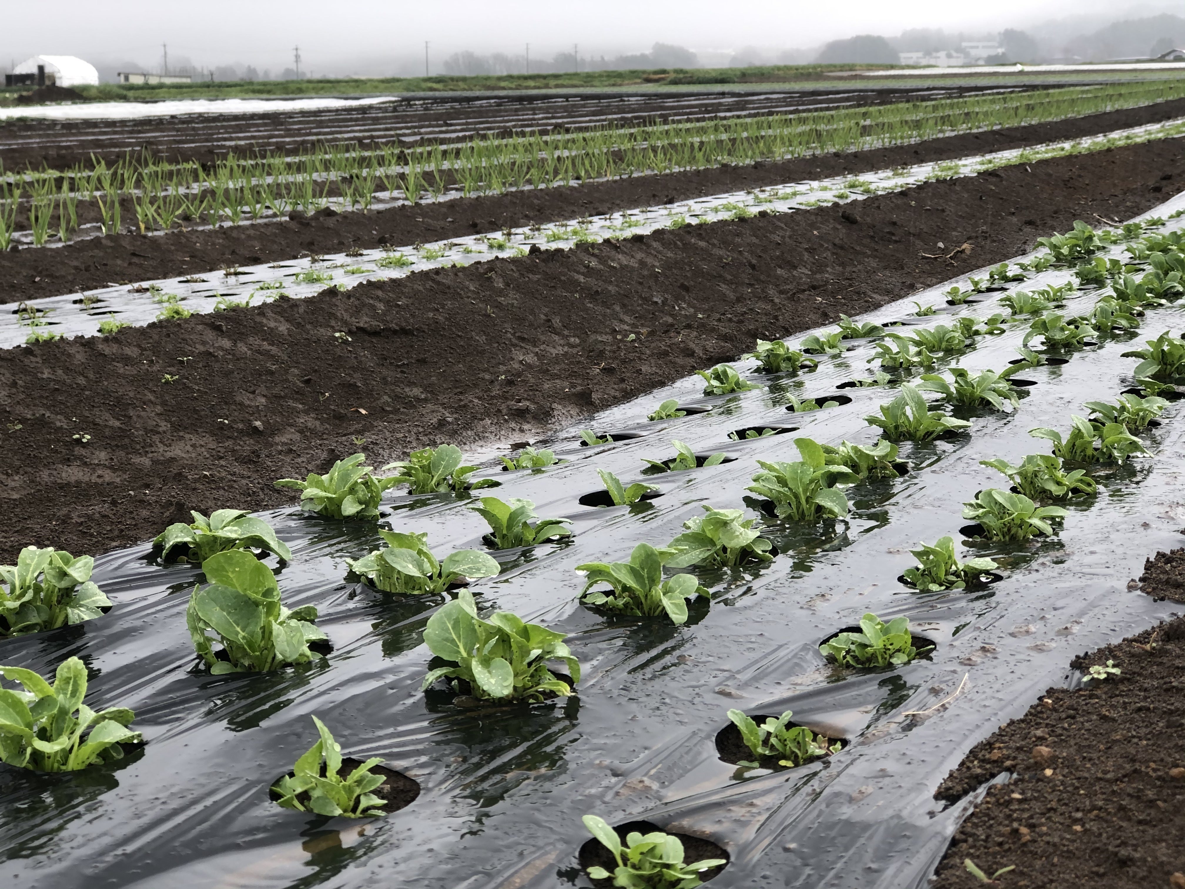 ハウスの中で育苗していた野菜たちも、少しずつ外の畑へ定植しています。