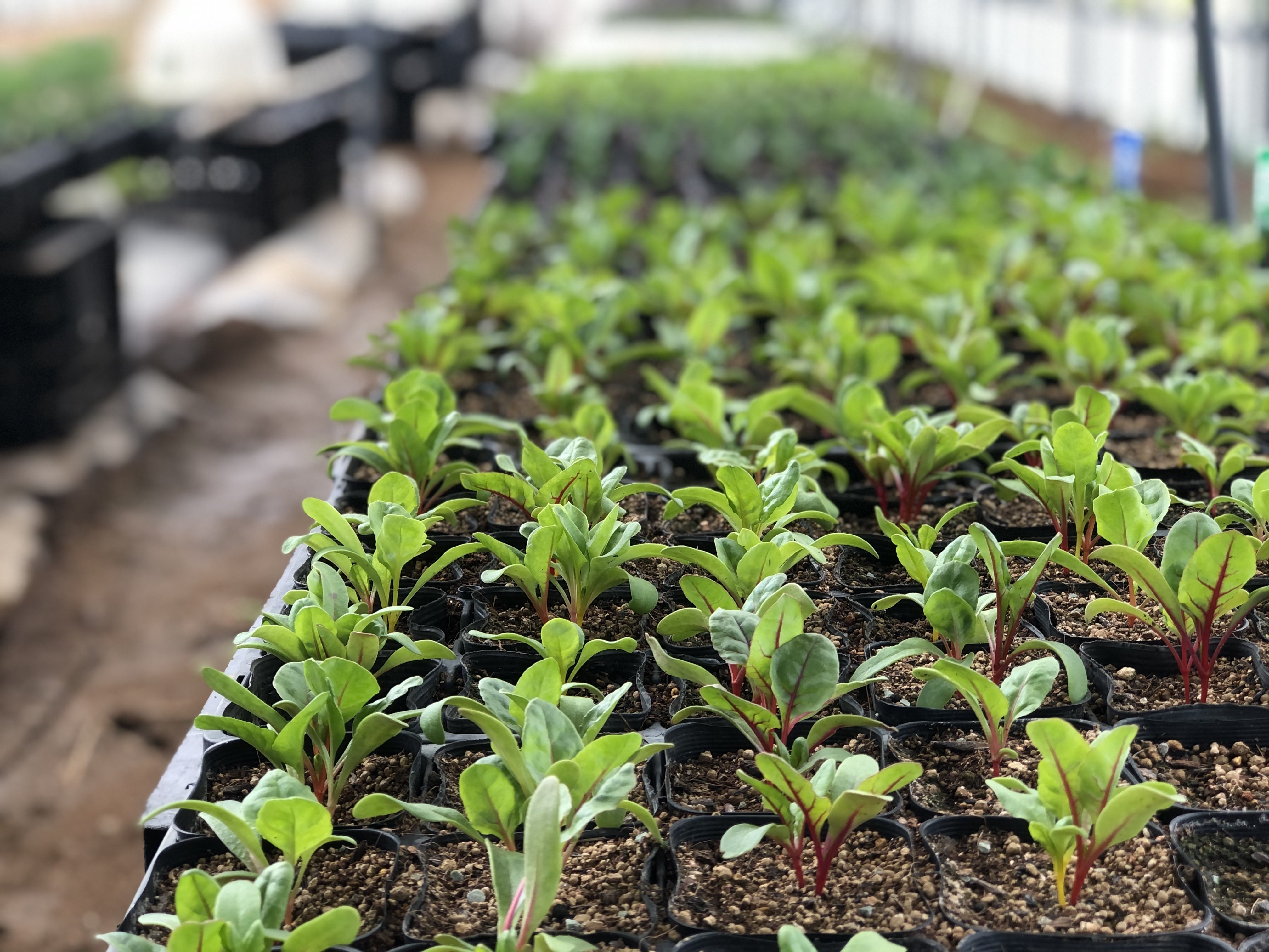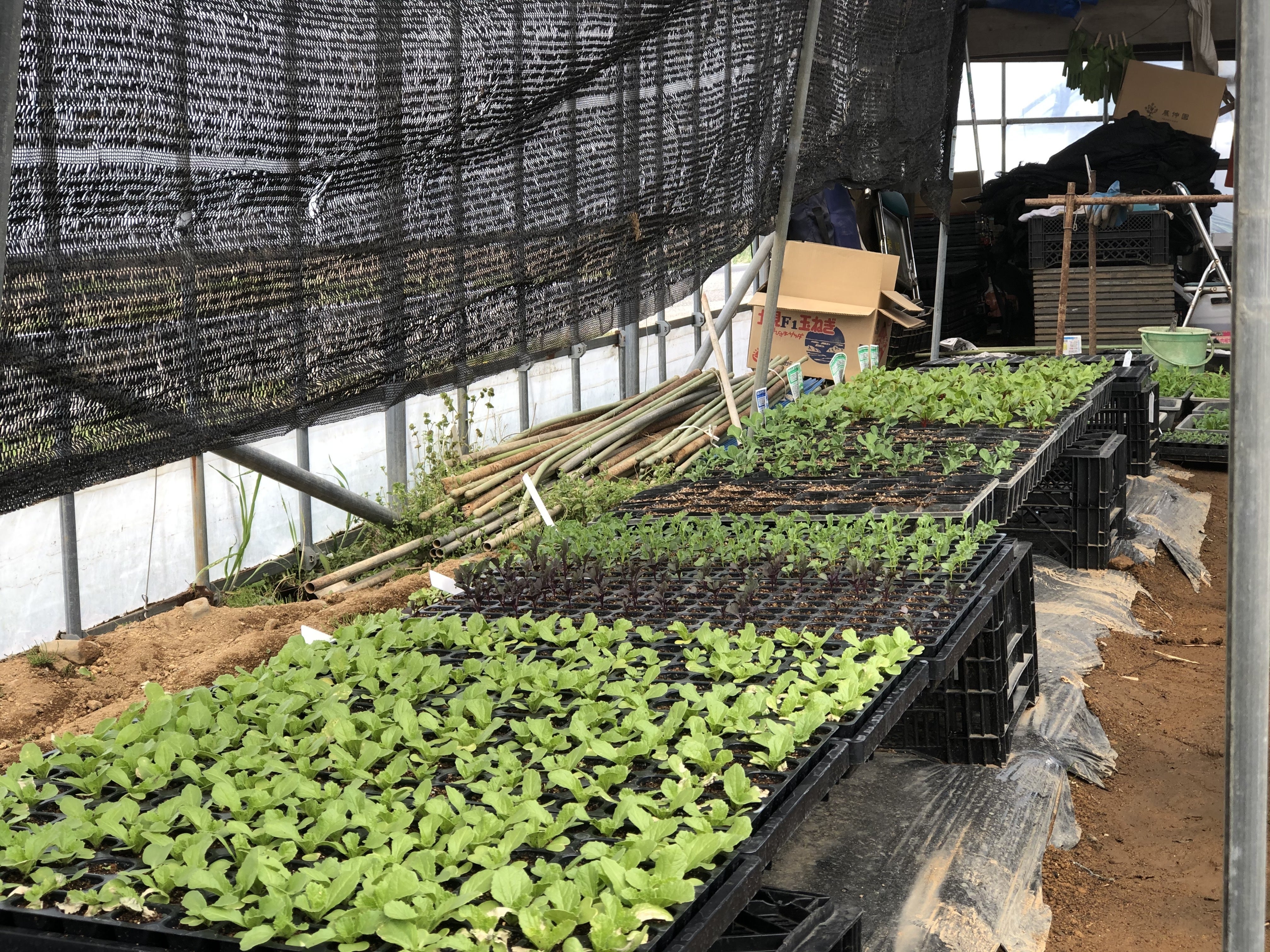 暖かいハウスの中で元気に育つ苗たち