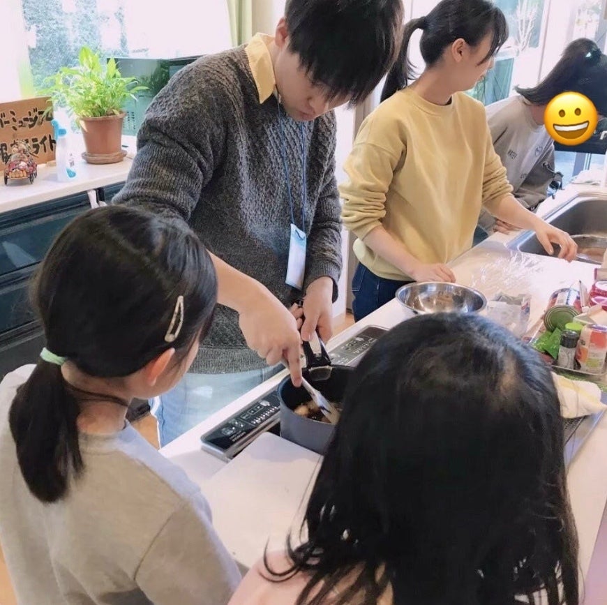 おやつの時間では、大学生が学びを終えた子どもたちとおやつを作り、一緒に食べることで交流しています。
