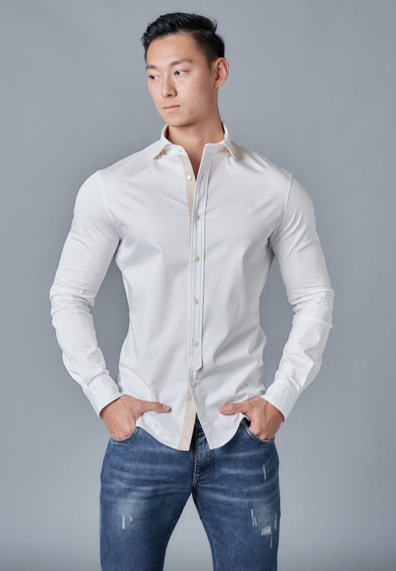 これも多くのトレーニーの方々が抱えている、背中に感じるつっかえと腕・肩回りの窮屈感。SuperfectaのYシャツは腕を通す袖の縫い目の広さを広げ、袖を細かく調整することで逞しく鍛えられた腕のカットを出せるだけでなく窮屈さを感じさせないフィット感を実現しました。