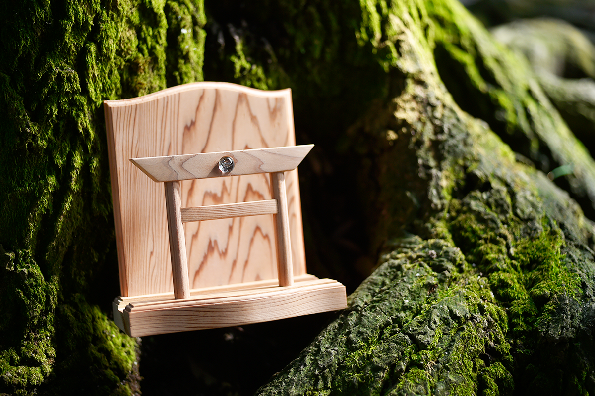 神木 屋久杉で作る 水晶鳥居付き「御札・御朱印帳飾り」です。