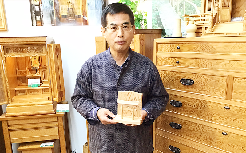 屋久杉の製材からデザイン、企画製造までを一貫しておこない、数々の屋久杉作品を手掛け、その卓越された技能から福岡県「現代の名工」、大川市の「現代の匠」にも認定される第一人者。