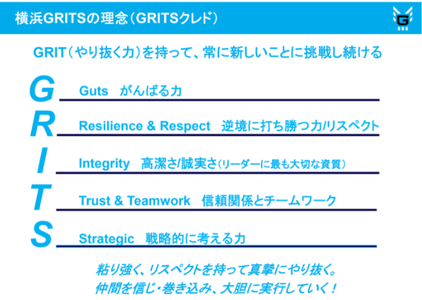 チーム初年度のシーズンを迎えるにあたり、多くの方に横浜GRITSの生き様を見て頂き、夢と生きる活力を伝播していけるチームに進化していければと切に願っています。