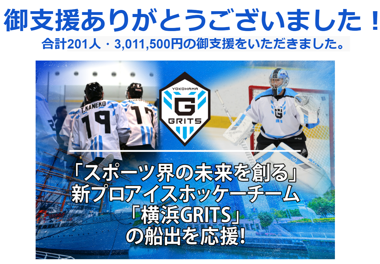 2020/12/31 08:42【横浜GRITSクラウドファンディング最終報告と御礼】昨日募集終了となりましたが、目標金額の150%達成しプロジェクトは成功裏に終了致しました。===========2020-11-03に募集開始、201人の支援により3,011,500円の御支援をいただき、2020-12-30に募集終了しました===========二か月間本当にありがとうございました。皆様の御支援の気持ちに応えられるよう、今後のGRITS communityの活性化に生かしていけたらと思っております。返礼品発送は年明け以降になりますので少々お待ちください。まずは最終報告と御礼まで、御協力本当にありがとうございました。2020年も大変お世話になりました。皆様良い年をお迎えください。横浜GRITS クラウドファンディングチーム もっと見る