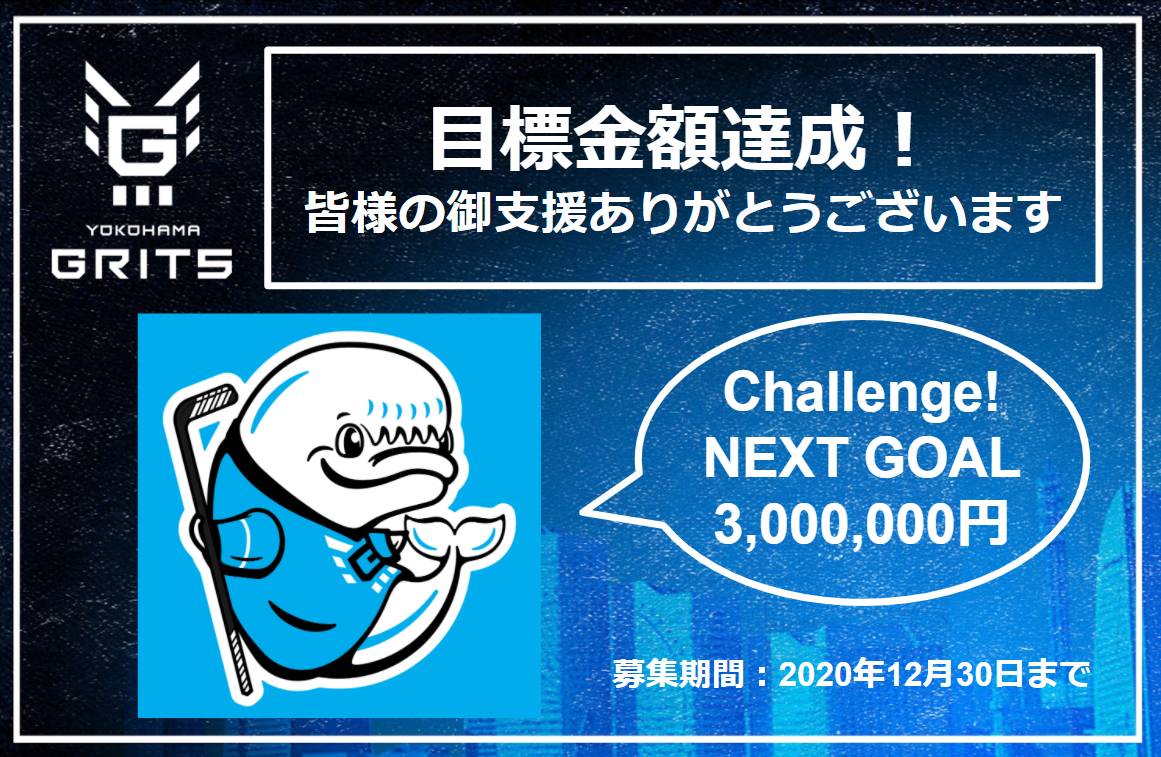 横浜GRITSクラウドファンディングは12月30日(水) 23:59:59で募集終了となります。