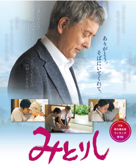 2019年9月には看取りの活動をだ柴田久美子が書いた本「私は、看取り士。」を原案に榎木孝明主演で映画「みとりし」ができあがり、銀座スバル座を皮切りに全国の映画館へと広がっていきました。現在はDVDの販売、Amazonプライムビデオでもご覧いいただけます。