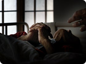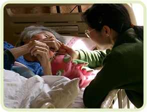 病気の告知を受けた後、親友へ交際終了を知らせる手紙を書くなど、旅立ちに向けて周到に準備をしていた玲子さん。 看取り士は、夫の康弘さん(仮名・80 歳)へ、奥様とのスキンシップを促す。マッサージ、手をつないでの散歩など、お二人は残された 短い時間の中で、大切な時を過ごされた。  「看取り士が『手をつないであげてください』と教えてくれたことから、(看取り時も) 自然と玲子に触れることができました。今振り返ると、もっとできることがあったかなと いう想いもありますが、みんなに囲まれて、妻の希望通りの見事な最期でした」