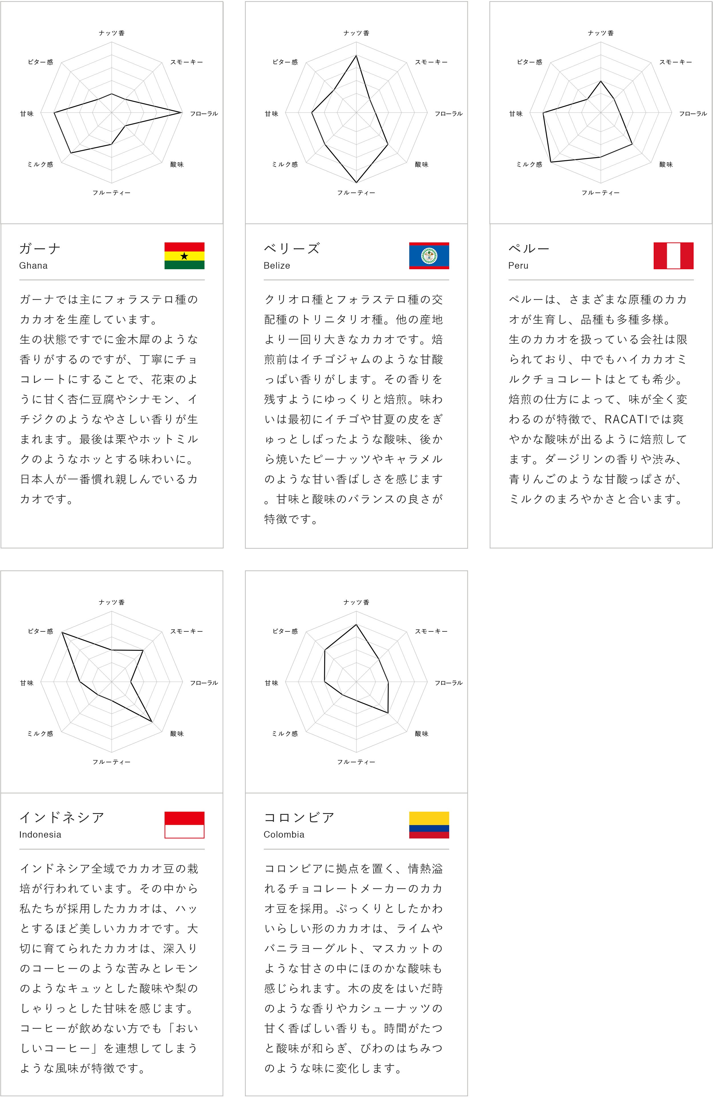 ※ペルー原産カカオのミルクチョコレートのみ全粉乳を使用しています。