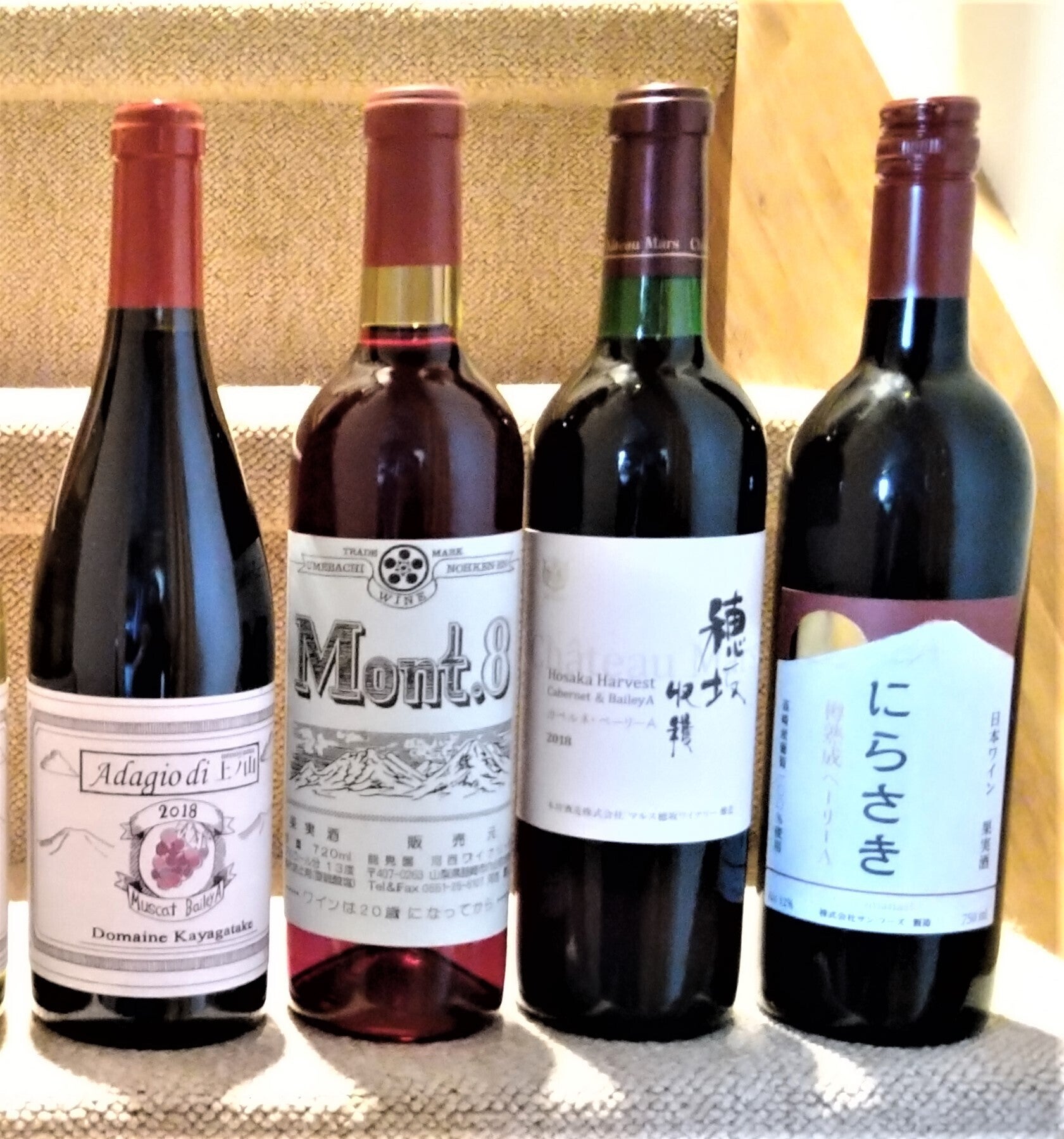 韮崎市認定ワイナリーの4社がお薦めの 赤ワイン(マスカットベリーA種主体)飲み比べ4本セット
