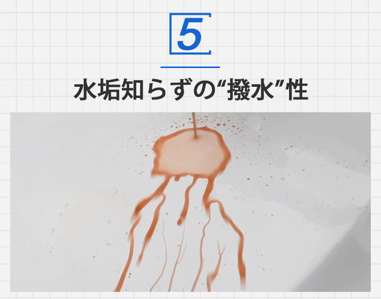 あらゆる汚れを弾き飛ばす、抜群の防汚性も発揮してくれます。ぎらぎらと残りやすい油膜も残さず、正真正銘の防汚を実現!
