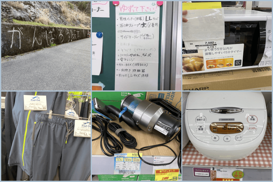 最近は人吉球磨地方の中でも被害の大きかった坂本村(現在八代市坂本町)の支援ハブセンターからの家電や肌着、服の提供を求める投稿を受け、レンジ、炊飯器、掃除機、肌着、作業着を購入されました。(写真)